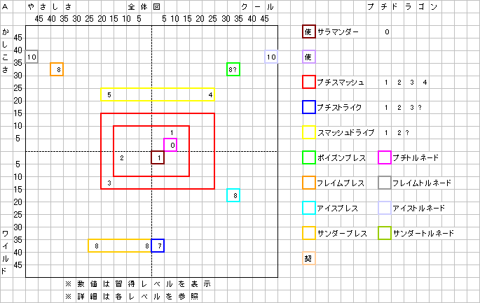 1.同一スキルの範囲はレベルが異なっても同じである。